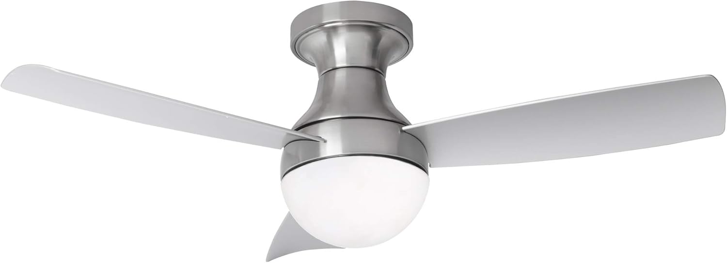 Crazy Deals Orb Indoor 3-Blade Smart Flush Mount Ceiling Fan 44in Brushed Nickel with 3000K LED Light Kit and Remote Control